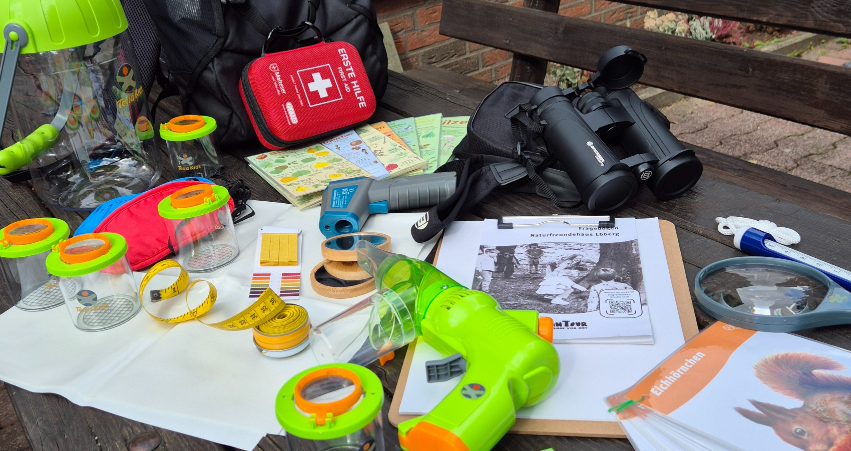 Für große und kleine Entdecker*innen gibt es beim Naturfreundehaus am Ebberg einen Naturerlebnis-Rucksack zum Ausleihen. Er ist ideal für Familien, Schulklassen oder Jugendgruppen und enthält: