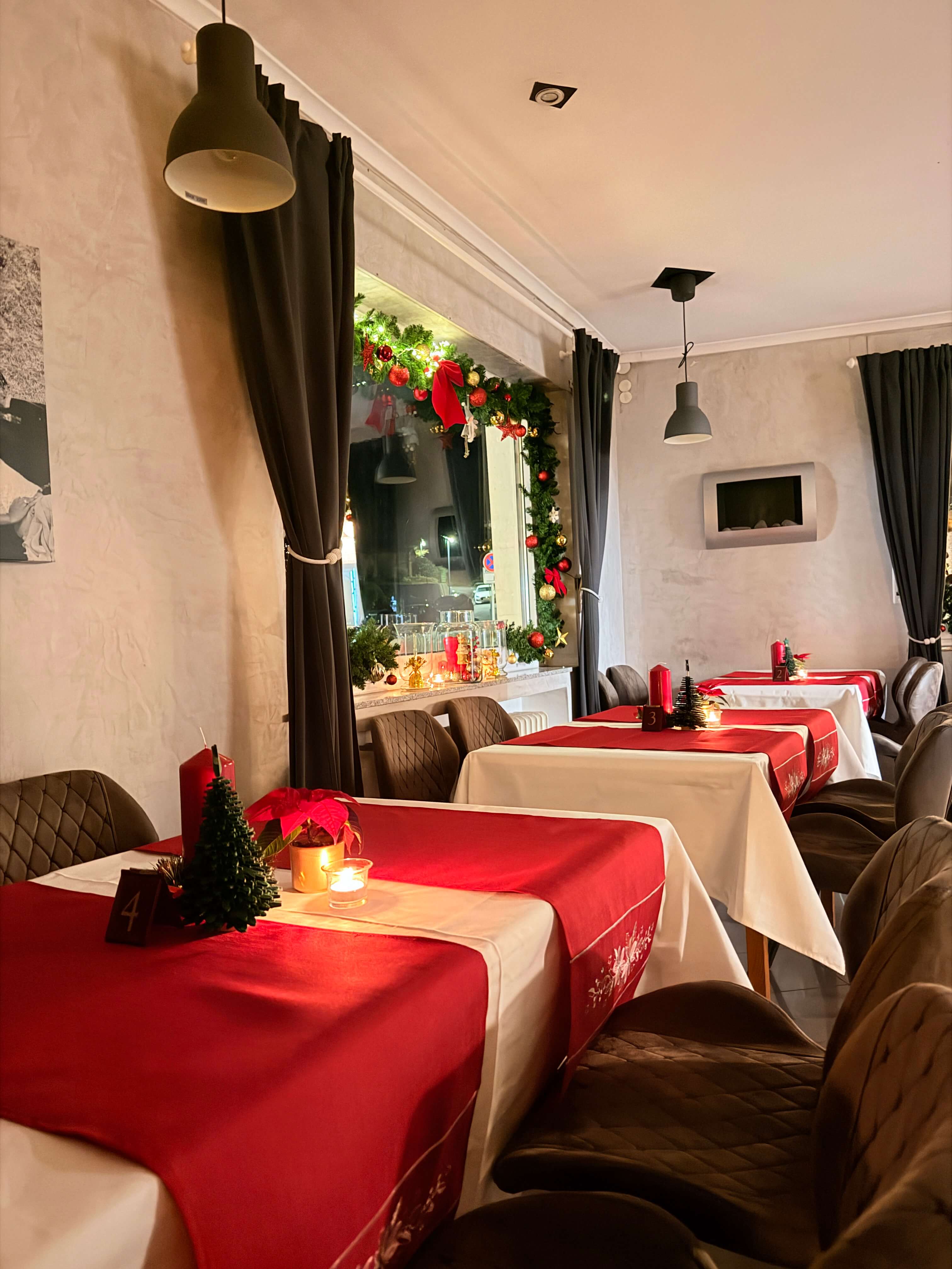 Der gemütliche Gastraum bietet Platz für rund 45 Gäste. Zusätzlich werden Catering-Leistungen sowie kalte und warme Platten für private Feiern und Firmenevents angeboten. Ein Lieferservice ergänzt das Angebot.