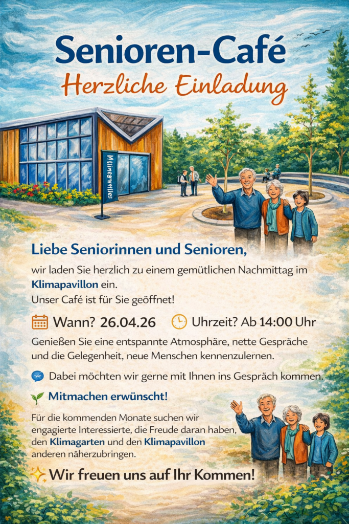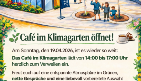 Das Café im Klimagarten lädt von 14:00 bis 17:00 Uhr herzlich zum Verweilen ein.