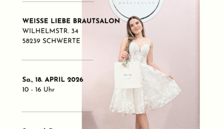 Am 18.04. von 10-16 Uhr findet unser Spring Sale im Weiße Liebe Brautsalon statt. Es gibt wunderschöne Braut- & Abendkleider zu sensationellen Preisen! Und das alles mit schönen Deko-Ideen, einem Begrüßungssekt und süßen Leckereien. Special Guest: Fabienne Dewenter, Hair & Make-up-Stylistin. Sie bertät euch zu eurem Brautstyling.