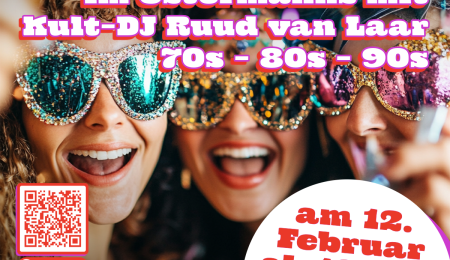 Aperol, Lillet & Co. Dazu ein leckeres Essen von unserer Karte und danach ab in den Tanzkeller und einfach mal so richtig abfeiern zu Beats aus den 70s, 80s und 90s. Aufgelegt von Kult-DJ Ruud van Laar. Wir freuen uns auf Euch!